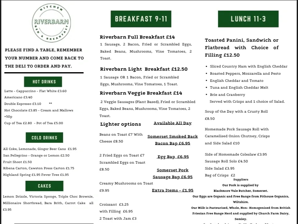 Riverbarn Kitchen - Bed & Breakfast Menu